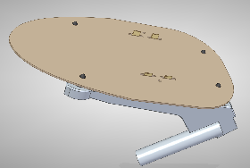 Wir wollten etwas innovatives und haben uns einen Federsattel vorgestellt. Dieser sollte auf eine Grundplatte die an dem original Schanier befestigt ist. Kaum war der Sattel da.. Fehlanzeige. Das Design war komplett unproportional. Also zurück zur kurzen Sitzbank. Diesmal aber mit etwas weicherem Schaumstoff, Schwarzes Kunstleder und etwas schmaler. Die Grundplatte ist nicht ganz so einfach anzufertigen will man die originalen Scharniere und das Schließblech nutzen. Daher also die Mühe eine 3D Simulation anzufertigen. Sie soll die Position der Bohrlöcher aufzeigen.